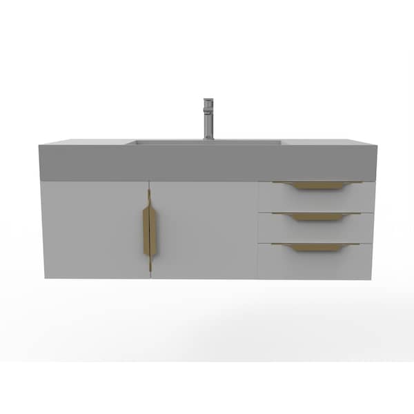 Amazon 48" Wall Mounted Gray Vanity With Gray Top And Gold Handles