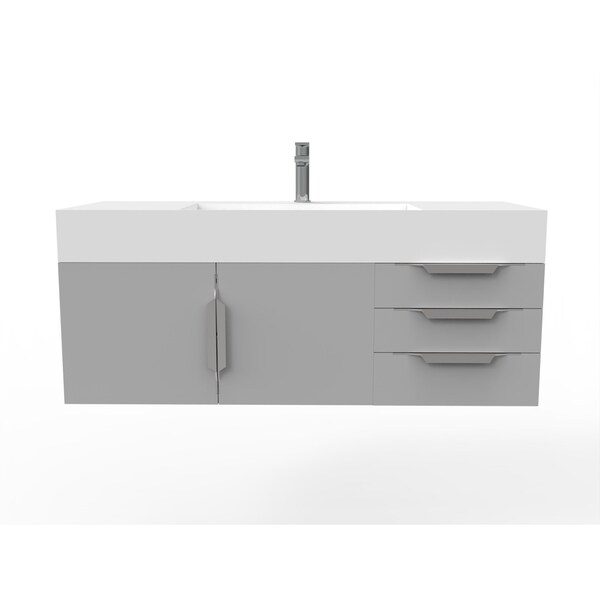 Amazon 48" Wall Mounted Gray Vanity With White Top And Chrome Handles