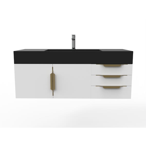 Amazon 48" Wall Mounted White Vanity With Black Top And Gold Handles
