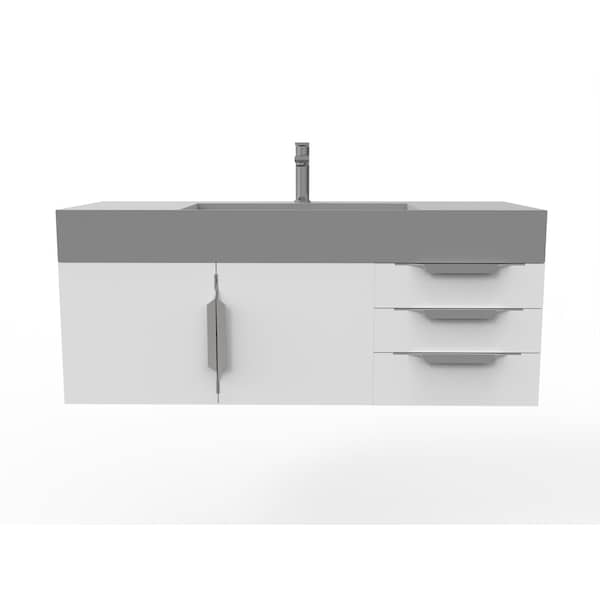 Amazon 48" Wall Mounted White Vanity With Gray Top And Brushed Nickel Handles