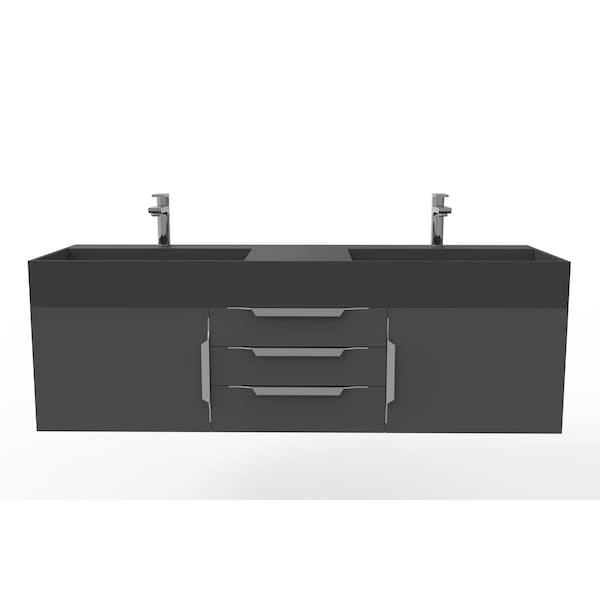 Amazon 60" Wall Mounted Black Vanity With Black Top And Brushed Nickel Handles