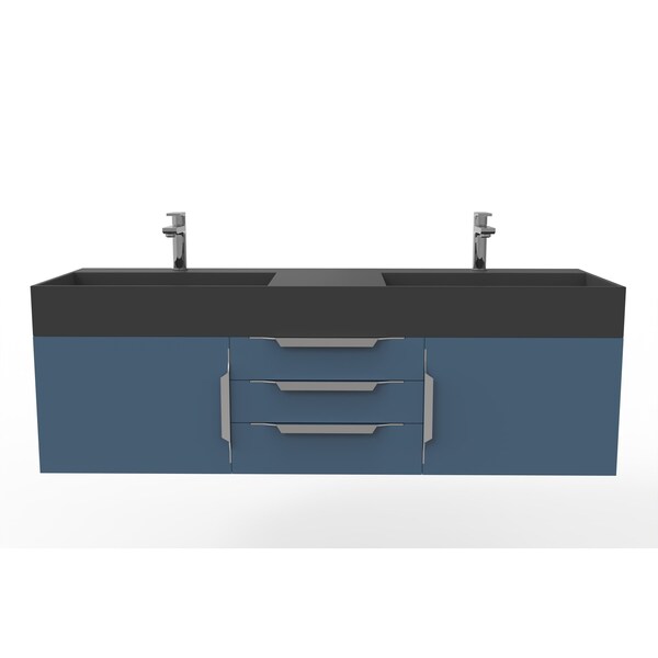 Amazon 60" Wall Mounted Blue Vanity With Black Top And Brushed Nickel Handles