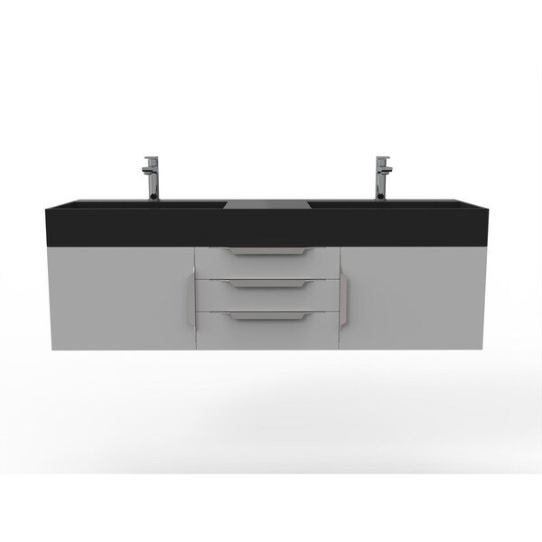 Amazon 60" Wall Mounted Gray Vanity With Black Top And Brushed Nickel Handles