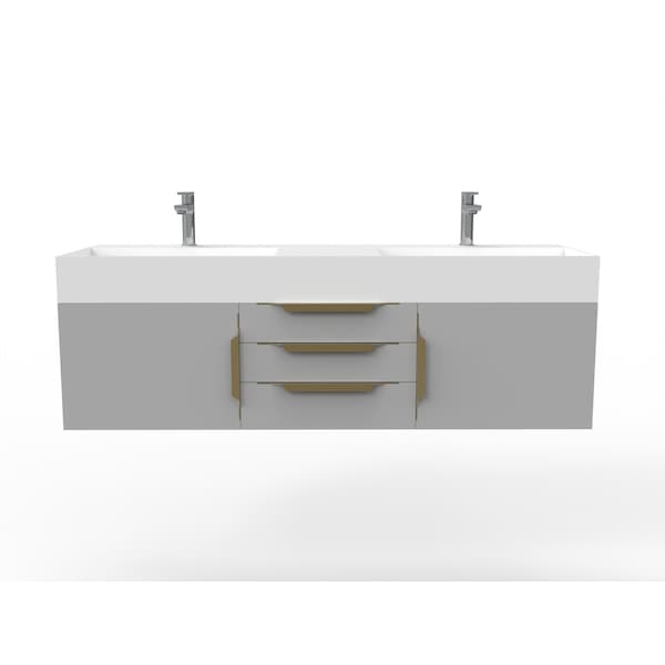 Amazon 60" Wall Mounted Gray Vanity With White Top And Gold Handles