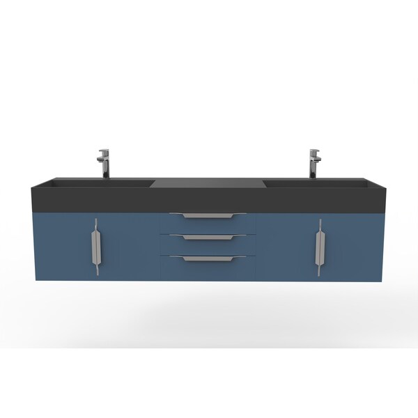 Amazon 72" Wall Mounted Blue Vanity With Black Top And Chrome Handles