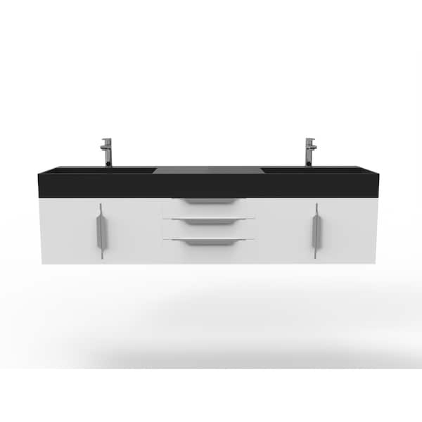 Amazon 72" Wall Mounted White Vanity With Black Top And Brushed Nickel Handles