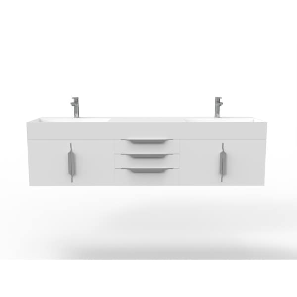 Amazon 72" Wall Mounted White Vanity With White Top And Brushed Nickel Handles