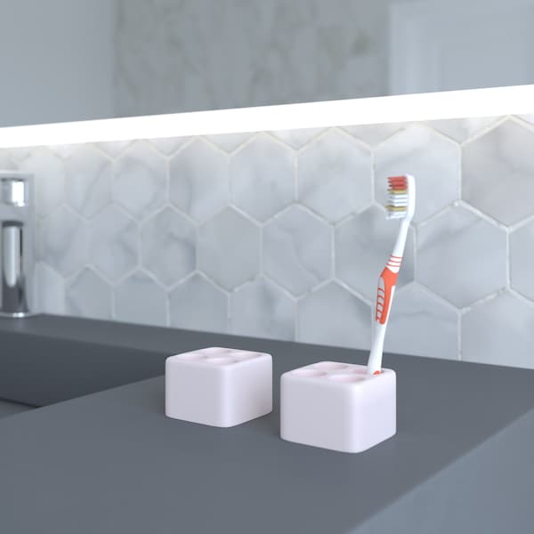 Keep your toothbrush as nice and clean as your teeth with this diatomite toothbrush holder. Made from the revolutionary mineral Diatomite, this toothbrush holder absorbs water and dries quickly, preventing the formation of mold or mildew. Stores four standard sized toothbrushes upright. Perfect for any bathroom.