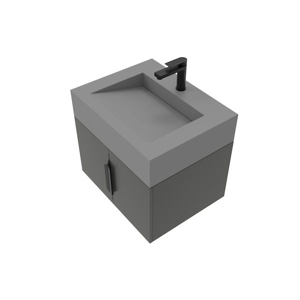 This beautiful, modern, wall-mounted vanity set comes with a base made from high quality birch and plywood and a top made of durable solid surface a type of man-made stone. It's modern minimalist look is enhanced by its mounting to the wall which gives the appearance that the vanity is floating. The doors feature soft close hinges to prevent slamming as well as sleek concealed pull handles to enhance the look without sacrificing function. The top features an elegant and modern sink with a basin sloped towards a subtle drain that gives the piece a sleek aesthetic and unparalleled sophistication. This vanity will be a stunning addition to any bathroom renovation.Note: Faucet not included. Portions of this item are handcrafted and handfinished and may have slight variations in color, size, or finish compared to what is pictured. No two items will look exactly the same