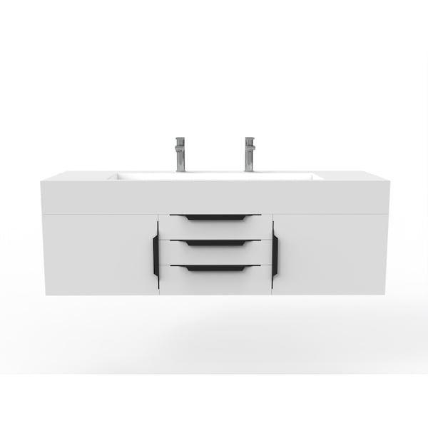 Nile 60" Wall Mounted White Vanity With White Top And Black Handles