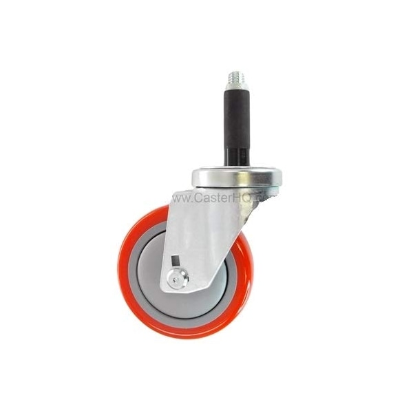 3" X 1-1/4" Swivel Caster, RED Polyurethane ON POLYOLEFIN Wheel, 1" Expanding STEM, 300 LBS Capacity