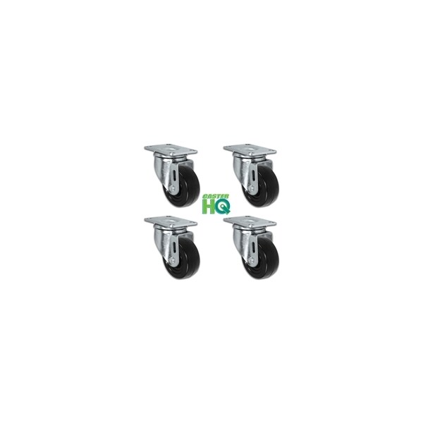 3" X 1.25" Black Hard Rubber Caster Set of 4, All Swivel Casters, 1,100 lbs Capacity Per Set