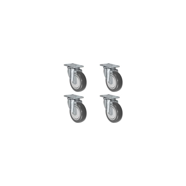 3" X 1.25" Gray Polyurethane on Polyolefin Caster Set of 4, All Swivel Casters, 1,000 lbs Capacity Per Set