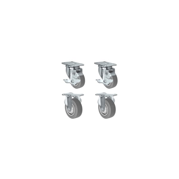 3" X 1.25" Thermo Plastic Rubber Caster Set of 4, 2 Locking Swivel Casters And 2 Rigid, 900 lbs Capacity Per Set