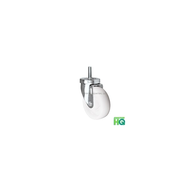 4" Threaded Stem Caster, Swivel Caster with White Nylon Wheel, 350 lbs Per Caster, 1/2" x 1-1/2" Long Threaded Stem Caster