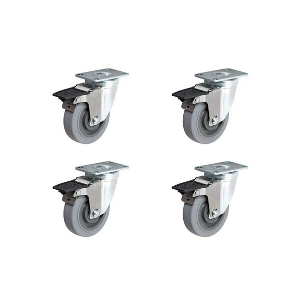 4" X 1-1/4" Gray Thermo Rubber Swivel Caster Set of 4 (Non Marking) Wheel, 800 LBS Capacity