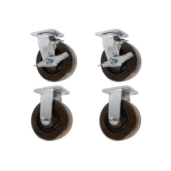 4" X 2" HIGH Temperature PHENOLIC Wheel, 2 Swivel W/Brakes And 2 Rigid, 2,400 lbs Capacity per Set of 4