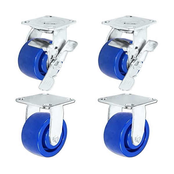 4" x 2" Stainless Steel Caster Set of 4, (2) Swivel Casters with Locking Brakes and (2) Fixed Casters, Blue Solid Poly Wheel, 800 Lbs Cap, Brand, 304 Stainless Steel, Anti-Rust Caster