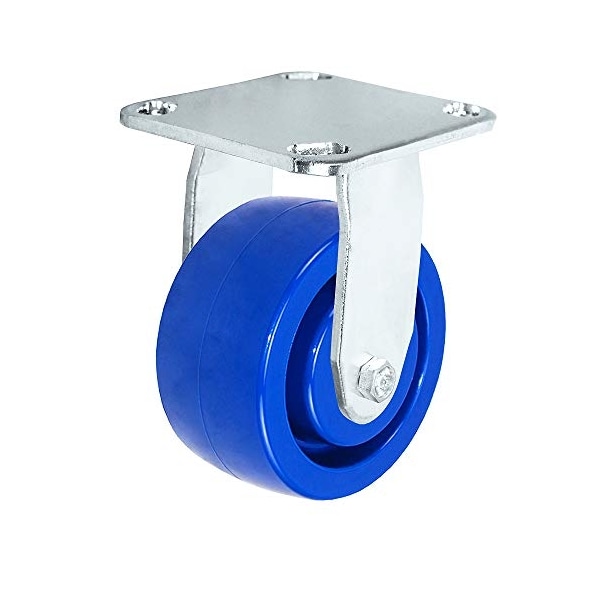 4"x2" Stainless Steel Rigid Fixed Caster, Blue Solid Poly Wheel, 8
