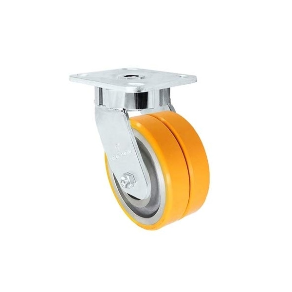 5" x 2" Dual Wheel Swivel Caster, Polyurethane on Aluminum, Maintenance Free Dual Wheel Caster, 1,200 lbs Per Caster