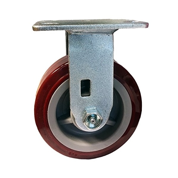5" X 2" Fixed Caster, Maroon on Gray Polyurethane on Polyolefin Wheel, 4"x4-1/2" Top Plate, 750 lbs Capacity