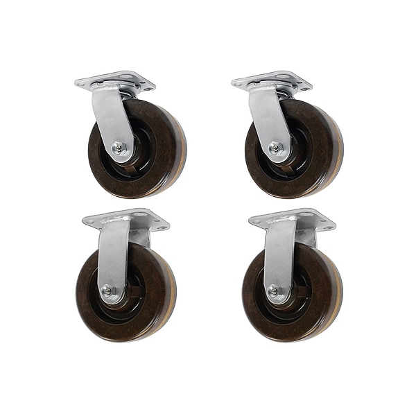 5" X 2" High Temperature Phenolic Wheel, 2 Swivel And 2 Rigid, 2,400 lbs Capacity Per Set of 4