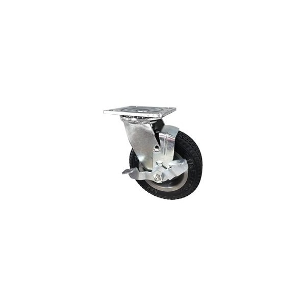 6'' Flat Free Swivel Caster w/ Brake, 6'' x 2'' Foam Filled Tire, 250 lbs Capacity6'' x 2'' Flat-Free wheel combined with a swivel caster flat free micro-cellular polyurethane foam, black, ball bearing, 250 lbs. capacity, swivel mounting plate dimensions 4'' x 4-1/2'' and overall height of 7-1/2''. CasterHQ's Flat Free wheels are made from closed cell Micro-cellular polyurethane foam and offer the same advantages of as a pneumatic tire without the possibility of leaking air out. Provides shock load protection and a smooth cushioned ride, rolling easily over debris and small obstacles. Wide, soft tread face is ideal for rolling on grass, sand, dirt, etc. Both black and gray wheels are non-marking. Available with precision bearings that offer maximum roll-ability and are maintenance free. Saw-tooth tread design offers both traction and maneuverability. Perfect for hand trucks, dollies, carts & mobile equipment such as generators, lawn & garden equipment, etc.250 lbs. CapacityWheel Color is BlackINCLUDES TOP LOCKING BRAKE AS SHOWN IN PHOTO