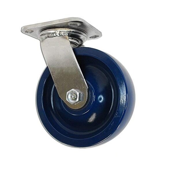 6" Stainless Steel Swivel Caster, Blue Solid Poly Wheel, 1200 Lbs Ca