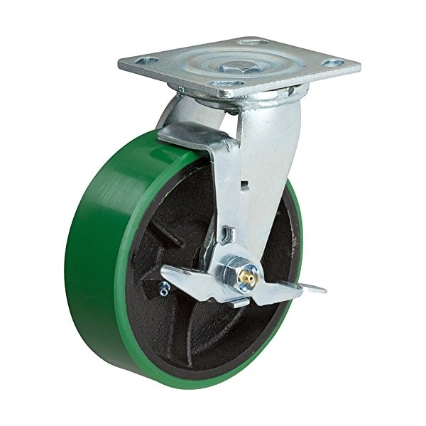6" Swivel Caster, 6x2 Green Polyurethane on Iron Wheel, 1200 L