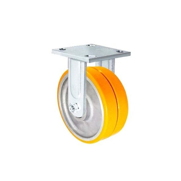 6" x 2" Dual Wheel Rigid Fixed Caster, Polyurethane on Aluminum, Maintenance Free Dual Wheel Caster, 1,500 lbs Per Caster
