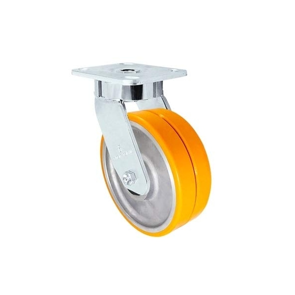 6" x 2" Dual Wheel Swivel Caster, Polyurethane on Aluminum, Maintenance Free Dual Wheel Caster, 1,500 lbs Per Caster