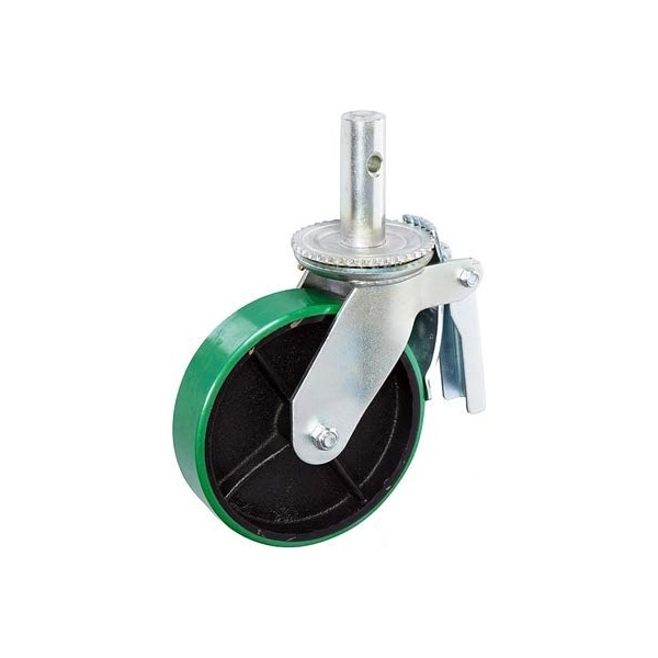 6"x2" Scaffold Caster W/ Brake, Polyurethane ON CAST Iron Wheel