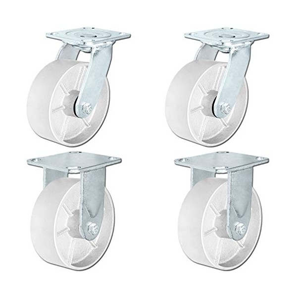6" x 2" Semi-Steel Wheel Casters, Set of 4 Casters 2 Swivel and 2 Fixed Casters, 1,200 lbs Per Caster, 4,800 lbs Capacity Per Set of 4, (4 Pack) Great for Tool Boxes