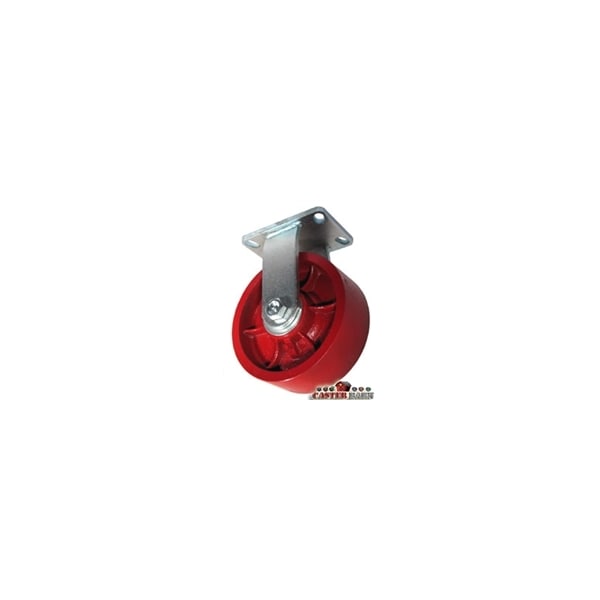 6" x 3" Kingpinless Heavy Duty Rigid Caster, Red Ductile Iron Wheel, 6,000 LBS Cap