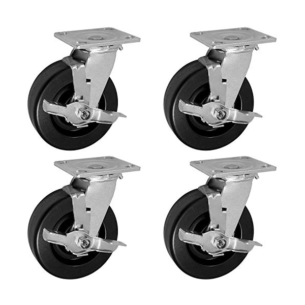 8" X 2", 4 Swivel CASTERS with Brakes, Set of 4, PHENOLIC Wheel, 4,000 LBS Capacity