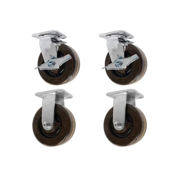8"x2" High Temp. Phenolic Wheel, 2 Swivel W/ Brakes And 2 Rigid, PK4
