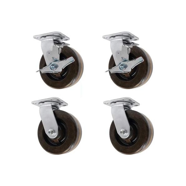 8" X 2" HIGH Temperature PHENOLIC Wheel, Swivel Caster Set of 4, 2 with Brakes, 3,600 LBS Capacity PER Set of 4