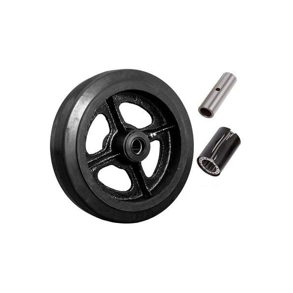 8"x2" Rubber ON CAST Iron Wheel, 600 LBS Capacity