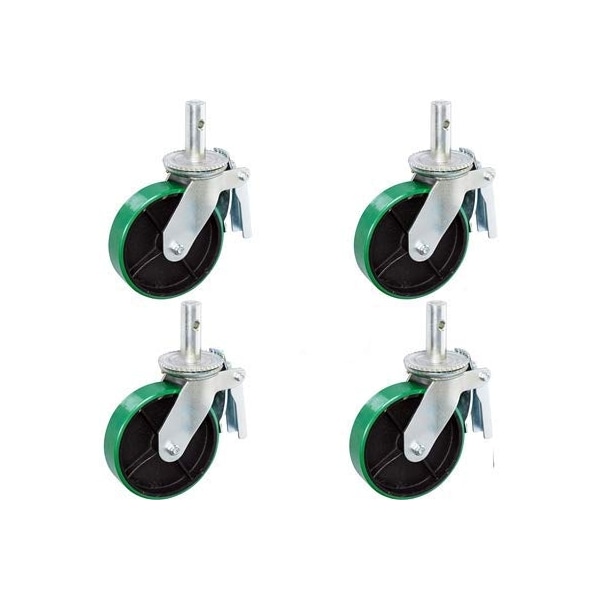 8" X 2" Scaffold Caster with Brake, Green Poly ON Steel Wheel, 800 LBS Capacity PER Caster, 3,200 LBS PER Set of 4, Heavy Duty Caster