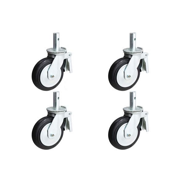 8"x2" Scaffold Caster W/ Brake, Mold-ON-Rubber Wheel, Metal Th, PK4