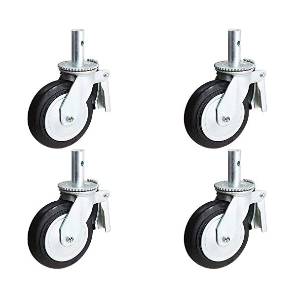 8" X 2" Scaffold Caster Set of 4 with Brakes, Mold-ON-Rubber Wheel, Metal Thread Guards Included, 2,000 LBS Capacity PER Set of 4, Brand