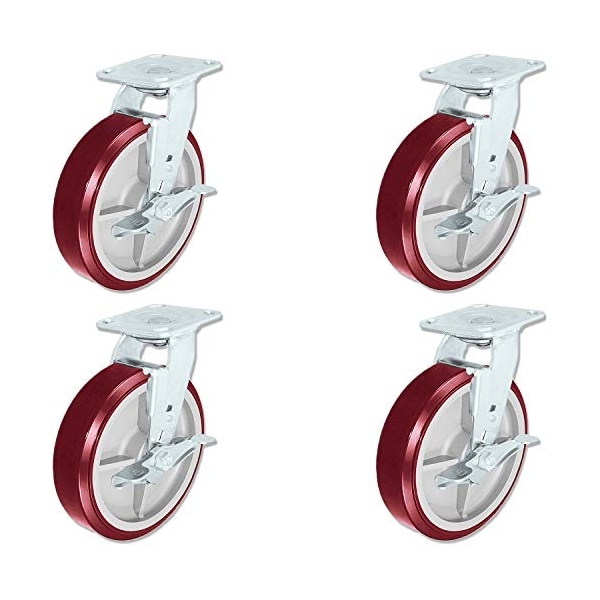 8" X 2" Swivel Caster Heavy Duty Polyurethane Wheel W/Brakes 950lbs Each, Set of (4) Tool Box