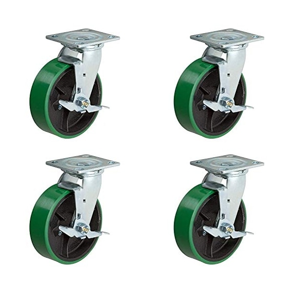 8" X 2" Swivel Caster Set, Heavy Duty Green Polyurethane Wheel on Steel Hub with Top Lock Brake, 1,200lb ea (4) Tool Box Set