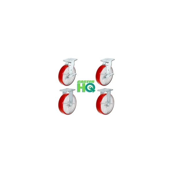 8"x2" Tool Box Kit, Red Polyurethane Wheel, 1,250 Lbs Capacity