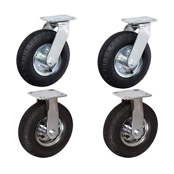 8" x 2.5" Swivel Rigid Set of 4 Pneumatic Caster, 4 PLY, 250 lbs per / 1000 lbs per Set Capacity, Air Filled, Commercial/Industrial Application, 8 inch, Shock Absorption,