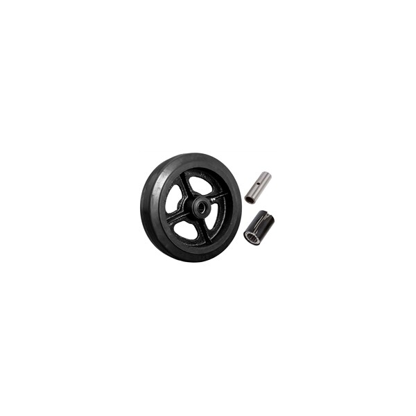 8" x 3" Rubber on Cast Iron Wheel, 900 lbs cap.