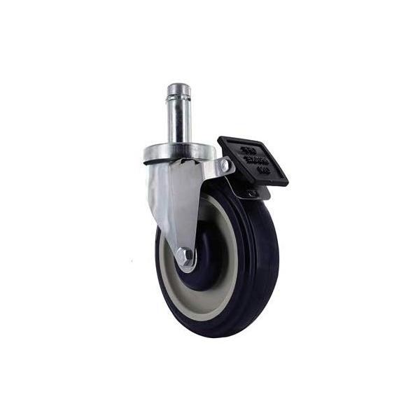 Universal Steel Wire Post Shelving Caster, 5" Polyurethane Wheel, Grip Ring STEM Front Locking Brakes
