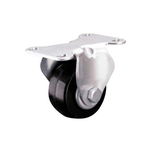low profile design offers low load height and quick swivel response. Ideal for business machines, dollies and carts. Nylon bearing, powdered metal bushing and double ball bearing, heat-treated raceway. Non-marring casters and thread guards are standard. Durable zinc plated finish.