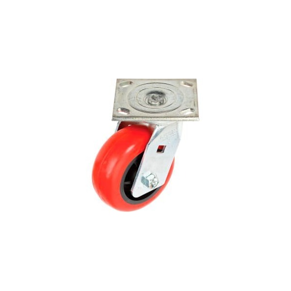 FAULTLESS SWIVEL PLATE CASTER 5" POLYURETHANE WHEEL - 1498-5 NEW ERGONOMIC DESIGN GIVES YOU HIGHER QUALITY, BETTER PERFORMANCE AND GREATER DURABILITY. PERMANENT .625" RIVET KINGPIN CONSTRUCTION FEATURING FULL DOUBLE BALL RACEWAYS WITH GREASE FITTINGS. POLYURETHANE CASTERS HAVE AN EXTENDED LIFE WITH EXCELLENT MOBILITY. THE CUSHIONED RIDE PROTECTS THE LOAD AND FLOORS.