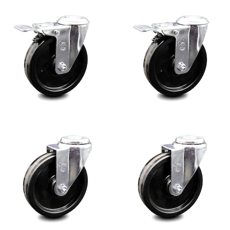 35 Inch Solid Polyurethane Swivel 34 Inch Threaded Stem Caster Set 2 Total Lock Brakes